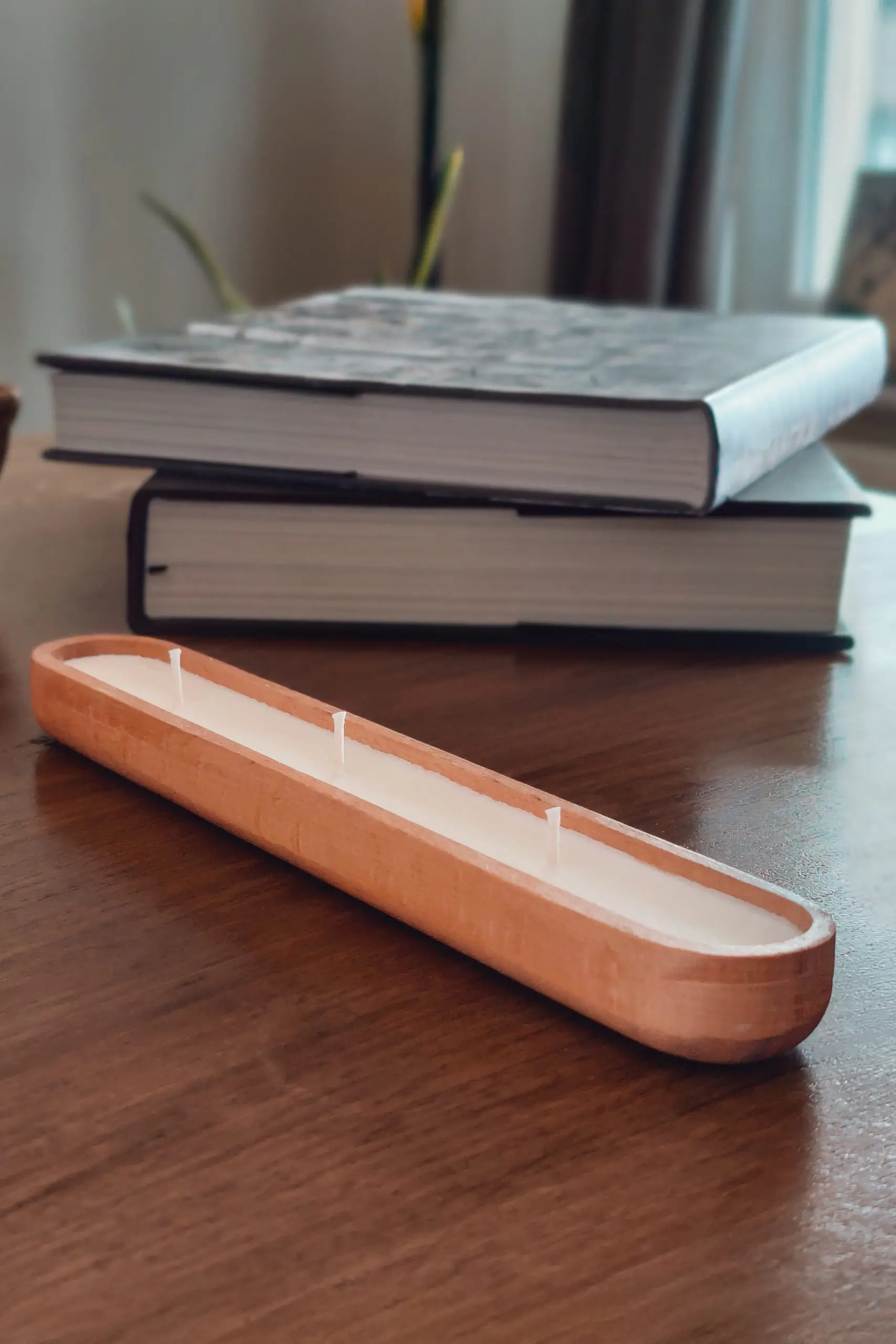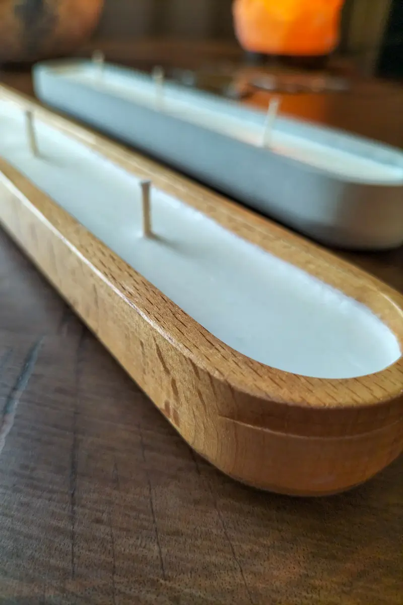Ahşap ve mumun uyumu, rahatlatıcı ve huzurlu bir deneyim sunarken, dekoratif yönüyle de göz alıcı bir stil oluşturur.